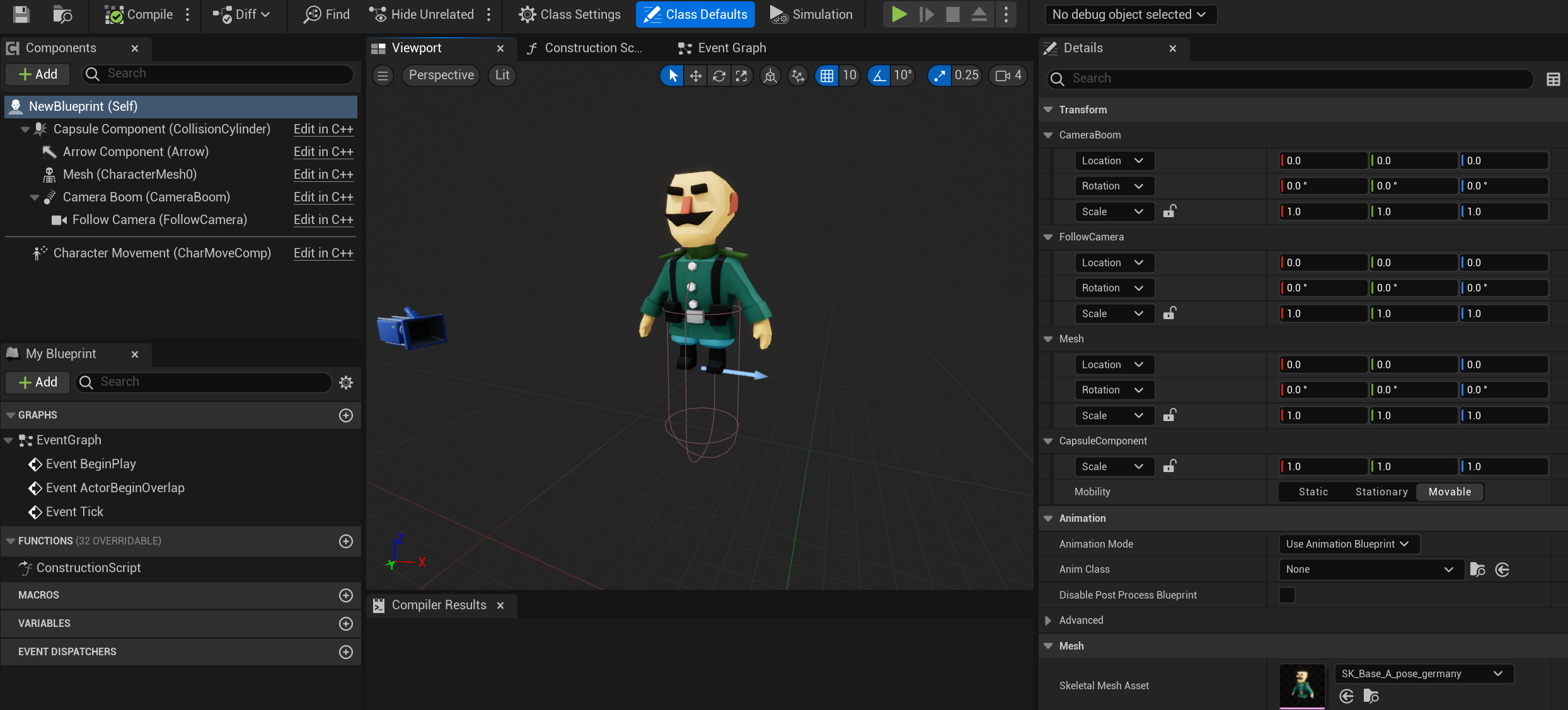우선 코드에 필요한부분을 설정해준다. (메쉬 셋팅, 카메라 셋팅) 메쉬는 CharacterBase에서 설정해주고 카메라 관련설정은 CharacterPlayer에서 설정해줬다.