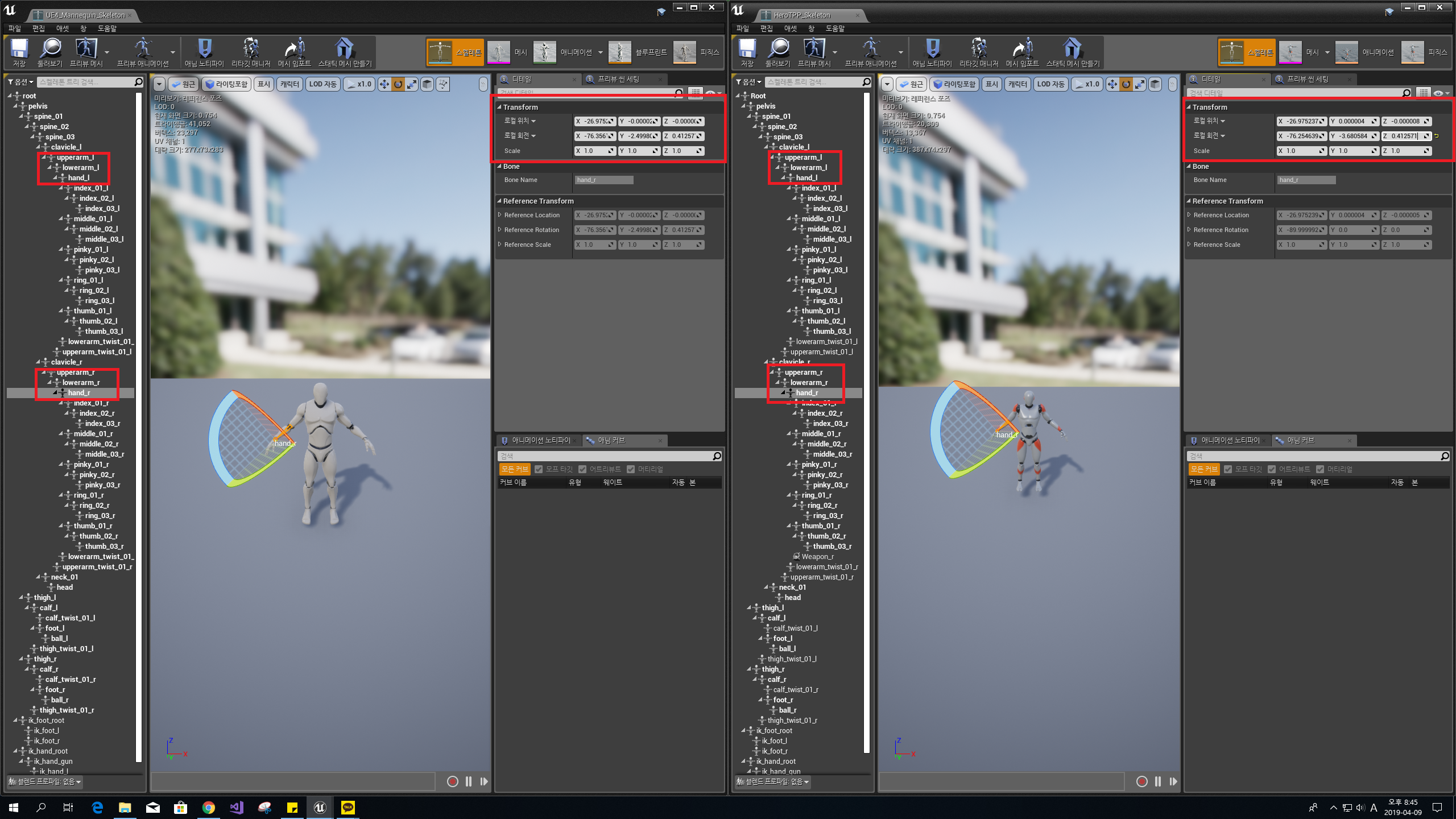 생김새를 보면 두 스켈레톤이 팔의 위치가 다른데, 이 팔의 위치를 맞춰줘야한다.