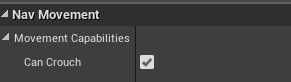 CharacterMovement를 받고, 그 안에서 CanCrouch값을 찾으려 했지만, 보이지 않았고, 관련된 함수를 따라 들어갔을때 아래처럼 NavAgentProps의 bCanCrouch값을 이용하는것을 확인했다.