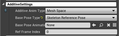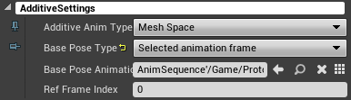 1. Additive Anim Type을 MeshSpace로 변경해준다. (애니메이션이 에임 오프셋과 호환되기 위해선 애디티브 애님 유형이 메시스페이스를 사용하도록 설정되어있어야한다.)